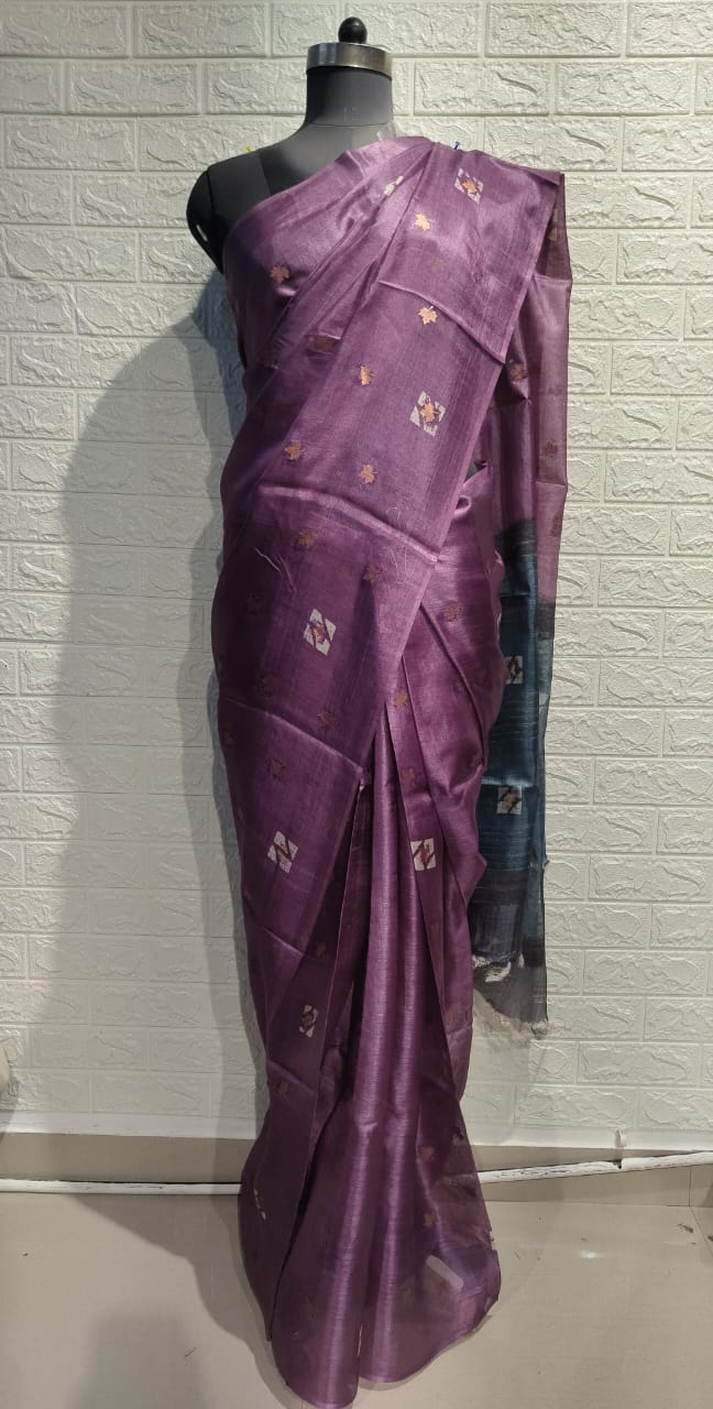 Pure Tussar Silk (also known as Kosa silk) is a luxurious, eco-friendly silk known for its natural texture, earthy tones, and subtle sheen. It’s produced from the larvae of silkworms that feed on wild forest trees, not mulberry leaves, giving it a uniquely rich and organic character.